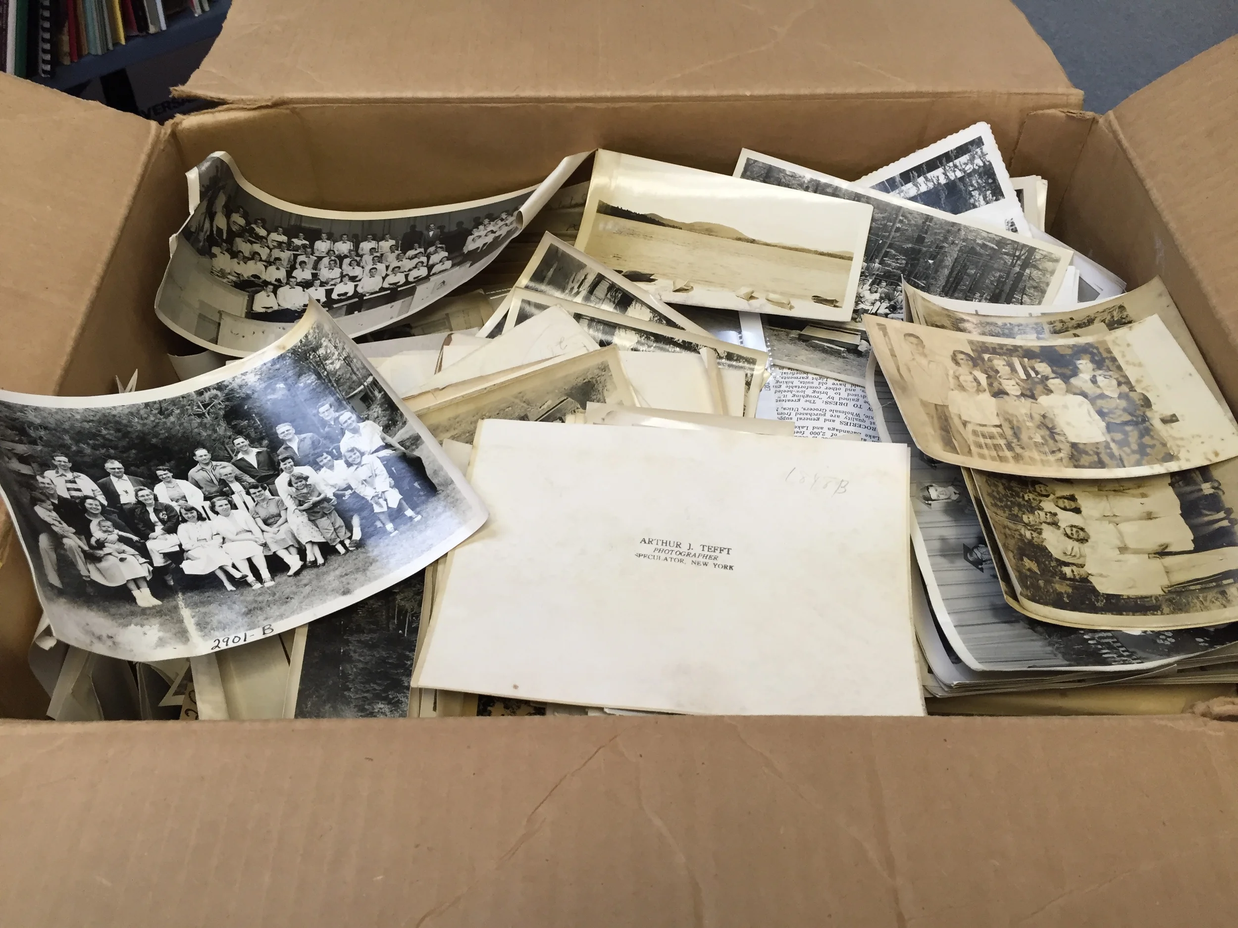 So, here’s my box. Sure enough, it says Camp of the Woods on the outside, and sure enough, there’s the Tefft mark right on a top photo. Doesn’t look too daunting, does it?
