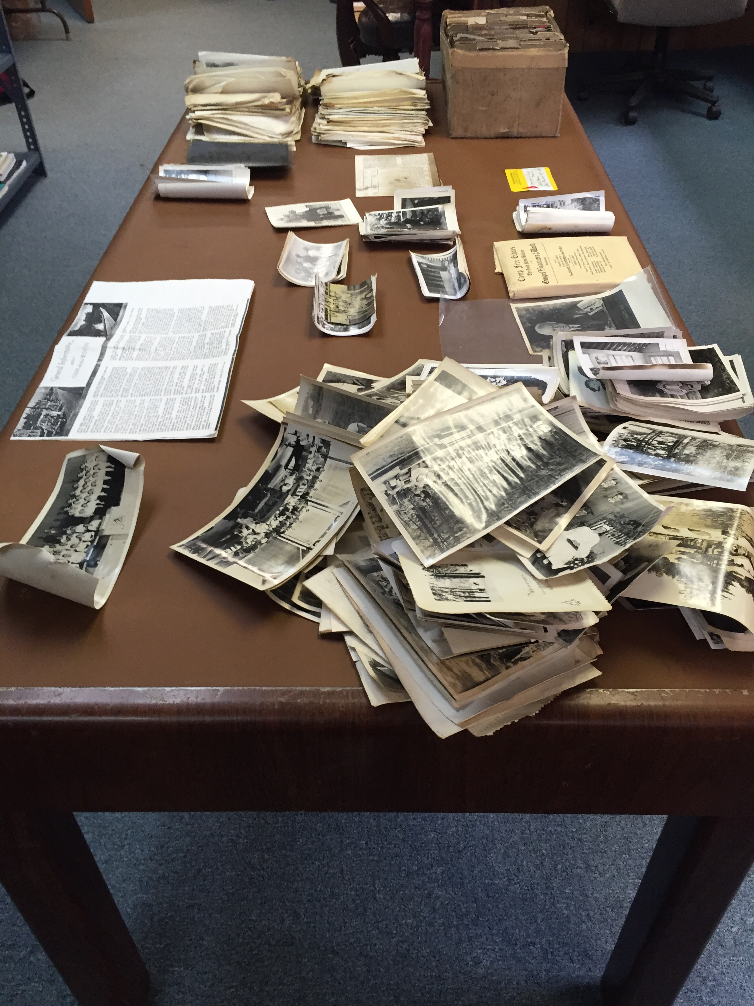 The first order of business is triage, then sorting. First, I'll separate out the ones which require conservation, like the poor curled item above. Next, I'll sort the loose photos (sans envelope or box) by size, setting aside any duplicates. Finally, I'll make a survey of the envelopes and the box. Here's my result: